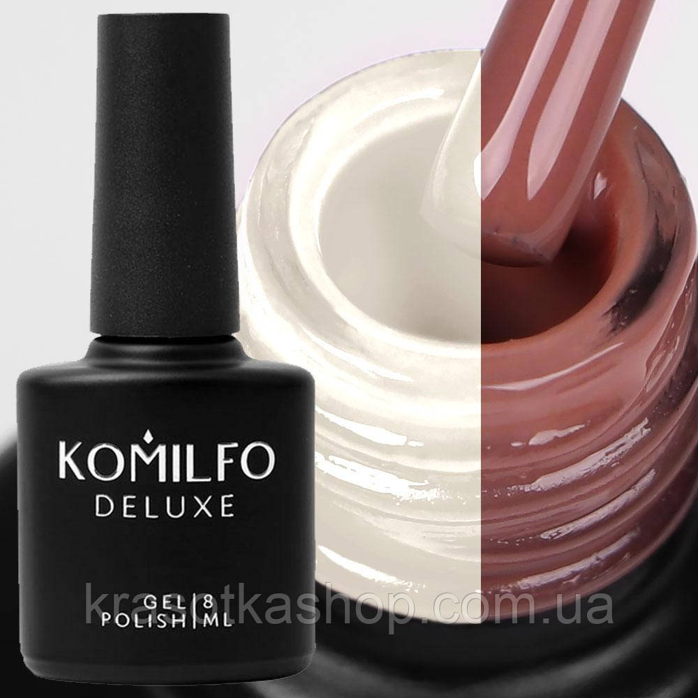 - Нанесіть 2 шари кольорового гель-лаку Komilfo. Не забувайте запечатувати кожен шар (включно з базою та топом). Час полімеризації кольорового гель-лаку в УФ-лампі — 2 хвилини, у LED-лампі — 30 секунд.